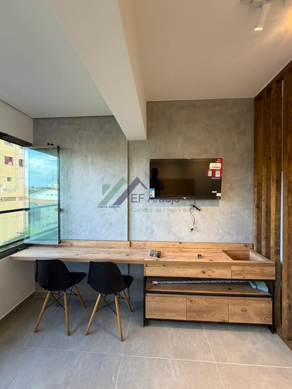 Sacada envidraçada ampliando o charmoso espaço e conta uma iluminação natural e ótima vista.